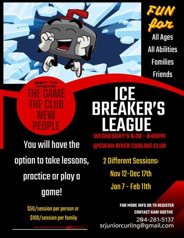 Join us Wednesday evenings from 6:30 to 8:30 for our Ice Breakers League! This flexible night is all about fun, learning, and getting on the ice; whether you want to take lessons, practice your skills, or play a casual game. Perfect for families, friends, and curlers of all ages and abilities.